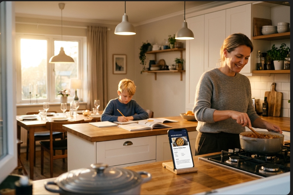 Easy-to-follow steps guide you from start to finish. Food is served.